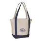 Ce sac fourre-tout en toile de coton de poids moyen est doté d'une fermeture éclair sur le dessus et d'une poche glissante pratique entre ses poignées. Transportez-le facilement sur votre épaule en utilisant les poignées à deux plis de 28 pouces de long qui ajoutent une touche de couleur assortie à la caractéristique de design en bas. Ce sac réutilisable robuste deviendra un allié préféré lors de vos visites à la bibliothèque, de vos sorties au marché fermier ou de vos visites à l'épicerie. 20" L x 16" H x 6" P