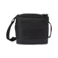 Ouverture à double fermeture éclair avec poignée pour un accès facile au compartiment principal. Poche latérale en filet pour bouteille d'eau et autres affaires. Base en matériau enduit lavable, facile à nettoyer. Poche avant zippée pour rangement supplémentaire. Bandoulière réglable. Poignée latérale. Doublure thermoscellée en EPPE. Sans PVC. Sans phtalates. Design breveté. Capacité de 12 canettes. Conforme à la CPSIA, Prop 65. 6" L x 9" H x 10" L.