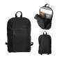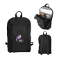 Le sac à dos pour ordinateur portable de 15 pouces a un design avant plissé avec une poche verticale zippée. Fermeture à double zip pour le compartiment principal, à l'intérieur se trouve une pochette rembourrée pour ordinateur portable ouverte, deux porte-stylos et deux poches à soufflet. Doublure intérieure grise en PU 210T avec mousse de 3 mm pour la sécurité. Poignée de transport supérieure et bretelles ajustables. Capacité de 13 litres. Conforme à la proposition 65. 11" L x 17" H x 6" P.
