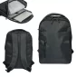 Double fermetures éclair pour le compartiment principal rembourré avec doublure rayée intérieure. Zone rembourrée avec fermeture à boucle et à crochet pour votre ordinateur portable jusqu'à 15" avec un deuxième compartiment avec double fermetures éclair et poches organisatrices. Poches zippées avant horizontales et verticales. Poignée de transport rembourrée en Airmesh et bretelles ajustables et fond extra rembourré pour une protection supplémentaire. Contient jusqu'à 7,5 litres. Livré dans un sac de rangement non tissé. Conforme à la proposition 65. 11" L x 15,75" H x 3,5" P