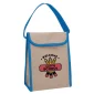 Sac à lunch Kraft avec garniture accentuée, une poignée de 19", une fermeture à bande auto-agrippante et est isolé en mousse. 7" L x 9" H x 4" P