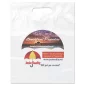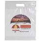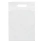 Ces sacs en plastique à faible densité avec poignées découpées renforcées sont un favori des clients depuis longtemps pour une bonne raison : simplicité, fonctionnalité et durabilité. Soufflet inférieur sur certaines tailles. Conforme à la CPSIA, à la FDA, à la Proposition 65. 12" L x 15" H x 3" P.