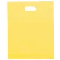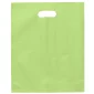 Rehaussez votre prochaine promotion avec ces sacs en plastique givré colorés de haute densité de 2,5 mil avec poignées découpées. Comprend un soufflet inférieur sur certaines tailles. Conforme à la CPSIA, à la FDA, à la Proposition 65. 12" L x 3" P x 15" H
