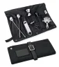 Emportez ce diplôme en mixologie sur la route ou à la soirée cocktail d'un ami à l'intérieur de ce sac de bar. Ce sac en toile cirée de 15" x 7 1/2" dispose d'une large sélection de poches et de compartiments pour ranger les cuillères à mélange, les ouvre-bouteilles, les tire-bouchons, les couvercles de shaker à cocktail et les petits pilons, y compris des sangles pour sécuriser les doseurs et les verres à shot. Le design comprend une fermeture éclair, un emplacement pour cartes de visite, des finitions en similicuir et une élégante fermeture à boucle. (Outils de bar non inclus.)
