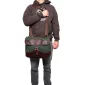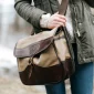 Conçu pour résister sur le terrain, mais assez élégant pour être utilisé en ville. Fabriqué en toile robuste de 15 onces avec des couvertures en cuir épais de qualité sur le fond et le rabat, une bandoulière en toile réglable avec un coussinet antidérapant, une poche intérieure plate zippée, et deux poches extérieures sur les côtés. À l'intérieur, il y a deux poches de séparation et un compartiment principal spacieux, et la sangle de rabat en cuir et la boucle à rouleau de haute qualité maintiennent votre chargement en sécurité. Conforme à la réglementation Prop 65. 10" H x 14" L x 5" P.