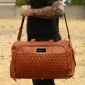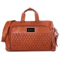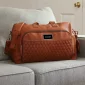 Un vrai plaisir pour les voyageurs ! Le sac de voyage en cuir Bell Canyon est fabriqué en cuir premium Zurich. Le sac possède une doublure intérieure à motif diamant et une étiquette de bagage assortie pour l'identification. Sa bandoulière ajustable peut être retirée, et le sac peut être porté à l'aide de ses poignées en cuir. Le compartiment principal spacieux comporte deux grandes poches et un petit compartiment zippé. La poche extérieure peut contenir des stylos, un téléphone et un portefeuille. Taille légale pour les bagages à main avec des pieds en cuir pleine fleur pour protéger contre la saleté. Conforme à la proposition 65. 19,5" L x 12" H