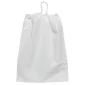 Ces sacs en plastique à faible densité sont dotés d'une poignée en coton à cordon pour resserrer le haut. Un soufflet inférieur est disponible dans certaines tailles. Conforme à la CPSIA, à la FDA, à la proposition 65. 12" L x 16" H x 4" P.
