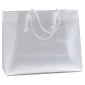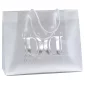 Les sacs en plastique givré haute densité élégants sont dotés de poignées en macramé, d'un haut renforcé repliable et d'un insert en carton au fond. Conforme à la CPSIA, à la FDA, à la Prop 65. 13" L x 5" P x 10" H