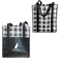 Appel à tous les amateurs de sirop d'érable, nous avons du carreau! Ce sac fourre-tout à carreaux de bûcheron est fabriqué en polypropylène non tissé laminé de 80g. Assez grand pour ramener vos courses à la maison et peut remplacer jusqu'à 4 sacs en plastique de taille standard. Parlez de réutilisable! Le sac a 2 poignées en matériau autonome de 20" et une grande poche avant. La stratification le rend résistant à l'eau et facile à nettoyer. Il suffit de l'essuyer avec un chiffon humide. Ce sac tendance est une alternative écologique aux sacs en plastique. Même style que notre sac fourre-tout en non-tissé Jumbo. Conforme à la proposition 65. 13" L x 15" H x 10" P