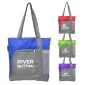 Ce sac fourre-tout bicolore est fabriqué en toile de polyester 600 deniers durable et dispose de sangles de transport renforcées. Le compartiment principal se ferme avec une fermeture éclair, ainsi qu'une poche extérieure plus petite, maintenant les articles en place en toute sécurité. Une poche latérale en filet orne également le sac, pour un accès rapide aux bouteilles d'eau ou aux collations. Personnalisez avec votre choix de couleur de garniture et une impression sérigraphique blanche. Conforme à la proposition 65. 16,93" L x 14,96" l x 4,53" P