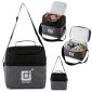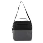 Sac isotherme en polyester bicolore 600D/300D avec doublure en PEVA et rembourrage en mousse PE de 5 mm. Compartiment principal zippé ; couvercle de poche zippée supérieure ; bandoulière réglable ; poignée de transport supérieure bicolore. 26 cm L x 26 cm H x 17,5 cm P