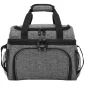 Ce sac isotherme dispose d'une capacité de compartiment inférieur de 24 canettes avec un compartiment supérieur plus petit séparé. Polyester 300D avec PEVA 15C, doublure en polyester 210D. Il dispose d'une poche avant zippée et de 2 poches latérales en filet. Les fermetures à glissière robustes n°10 désignent le compartiment principal. Doublure scellée à chaud en PEVA dans le compartiment inférieur. Bandoulière réglable avec poignées rembourrées sécurisées par boucle et crochet. 11" de profondeur x 13" de largeur x 9" de hauteur.