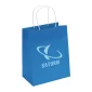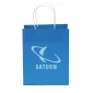 La collection Brite Shopper comprend trois sacs en papier mat de 75# de couleur vive avec un haut pliable et des poignées en papier torsadé blanc. Conforme à la CPSIA, FDA. 7,75" L x 4,75" P x 9,75" H