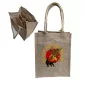 Sac à vin de six bouteilles fabriqué en jute écologique avec une poignée en tissu, mesurant 11" de largeur sur 14,5" de hauteur. Le jute est l'option naturelle pour un environnement plus sain. 11" de largeur sur 14,5" de hauteur.
