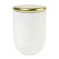 La collection de bougies Cora est fabriquée avec une cire de soja, connue pour sa combustion propre et sa flamme douce. Associée à une mèche en coton respectueuse de l'environnement, vous pouvez profiter d'une combustion uniforme pendant jusqu'à 38 heures. Simple mais raffinée, chaque bougie est enfermée dans un récipient en verre noir brillant ou blanc pur, au choix, fabriqué à la main en Inde. Scellée avec un couvercle décoratif en métal doré pour ajouter une touche d'élégance tout en conservant le parfum. Conforme à la CPSIA, Prop 65. 4,5" L x 3" H x 3" L