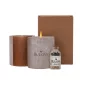 Cette bougie de 12 oz. coulée à la main et gravée au laser présente de superbes détails en cuivre et en béton. L'association a l'air riche et coûteuse, mais ne vous ruinera pas. De plus, elle est dotée de pieds rembourrés pour ne pas rayer les tables ou les sols. Cet ensemble cadeau Glimmer est livré avec des allumettes de sécurité et une boîte cadeau kraft sur mesure. C'est tout ce dont vous avez besoin pour susciter la fidélité des clients les plus importants pour votre entreprise. Conforme à la proposition 65. 3,1875" L x 4,25" H x 3,1875" P.