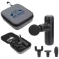 Récupérez avec notre pistolet de massage de 5000mAh avec 4 têtes de massage interchangeables dans un étui rigide en polyester cationique 300D avec fermeture éclair ! Ciblez les articulations, les tissus profonds, le cou, les épaules et plus encore avec des têtes de balle, plates, à fourche et à bille qui se fixent. Le masseur propose trois options de vitesse : vitesse 1 à 2400 tr/min, vitesse 2 à 2800 tr/min et vitesse 3 à 3200 tr/min. Le temps de fonctionnement du masseur est jusqu'à 6,5 heures et le temps de charge est jusqu'à 3-1/2 heures. Comprend un câble USB-C. Conforme à OU, Prop 65, UN38.3. 7,25" L x 2,5" l x 8" H