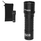 Boîtier, lunette et capuchon arrière en aluminium de qualité aéronautique 6061-T6 avec finition anodisée dure de type III, Type d'ampoule : LED CREE®, Comprend 3 piles AAA, un support de pile et un sac, Bague de lunette rotative, Interrupteur de capuchon arrière texturé, Puissance lumineuse : 275 lumens (fort), 115 lumens (moyen), 45 lumens (faible), Résistant aux chocs et aux produits chimiques, Certificat de conformité, Étanche IP-X7, Grip antidérapant, Garantie limitée d'un an. 1,25" de diamètre x 1,25" de largeur x 4,5" de hauteur.