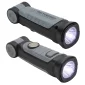La lampe de travail COB avec crochet et aimant est une lampe de travail rotative dotée de fonctionnalités multifonctionnelles. La lumière COB rotative à 270 degrés (270 lumens) s'allume lorsqu'elle est ouverte et la LED en bas (87 lumens) est contrôlée par un bouton à l'arrière. Un aimant puissant à l'arrière permet la fonction lampe de travail et le crochet se replie proprement sur le dessus de la lampe de travail. Alimenté par 3 piles AAA, insérées. Conforme à la proposition 65. 1,75" L x 1,75" l x 5,75" H.