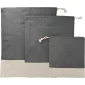 Ensemble de trois pochettes de voyage recyclées.