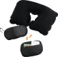 Le kit de voyage de confort personnel comprend une pochette zippée avec une poche avant ouverte qui contient 2 bouchons d'oreilles en mousse douce, un masque pour les yeux noir et un oreiller gonflable à toucher doux pour le cou. 1,50" de profondeur x 6,00" de largeur x 3,75" de hauteur.