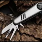 Le matériau de cette fourchette de golf multifonction est en acier inoxydable. Elle est composée d'une fourchette verte, d'un couteau, d'une clé, d'un porte-clés, d'un stylo à bille, d'un marqueur magnétique et d'une brosse. De nombreuses fonctions et de petite taille. Il est très pratique à transporter. Le logo peut être personnalisé. 3,5" L x 1" l x 0,8" H
