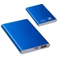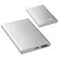 Batterie externe de 4000mAh de capacité dans un boîtier en aluminium mince, 4 voyants lumineux LED, câble micro vers USB standard inclus, batterie Li-Polymère certifiée UL. Conforme à la Prop 65, UL, UN38.3. 4,25" L x 0,375" l x 2,625" H