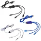 Faites briller votre marque avec un logo lumineux LED sur le câble de charge 3-en-1 Traverse ! Comprend un adaptateur type-C, micro USB et 5 broches pour charger les appareils Android et autres smartphones avec des entrées USB et USB type-C. Élimine le besoin de transporter plusieurs câbles. Il suffit de le brancher sur une source d'alimentation USB, puis de le connecter à votre smartphone ou appareil pour le charger. La gravure au laser est nécessaire pour activer la fonction du logo lumineux LED. Prend en charge un courant de 5V/2A. Conforme à la proposition 65. 2" L x 0.375" l x 1" H
