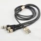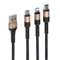 Câble de charge avec une belle gaine tressée pour une protection qui comprend un design de forme ronde micro, type-C et lightning avec des adaptateurs USB. Il est flexible, durable et portable, idéal pour les voyages et une utilisation quotidienne. Longueur du câble : 1,2 mètre. LIVRAISON GRATUITE À 1 EMPLACEMENT MÉTROPOLITAIN. 120 cm L.