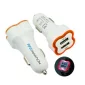 Cet adaptateur de voiture USB à double port se branche sur la prise allume-cigare de votre véhicule pour devenir un chargeur. Il vous suffit de connecter votre câble USB pour alimenter vos appareils : téléphones, appareils photo, assistants personnels et autres appareils depuis le confort de votre voiture. Léger, compact et élégant, ce chargeur de voiture USB à 2 ports a une base blanche et un rebord coloré qui s'allume lorsqu'il est en cours d'utilisation. Les caractéristiques comprennent une garantie d'un an et l'article est testé avant l'expédition. Conforme aux normes CE, FCC, Prop 65, RoHS. 60mm L x 25mm H x 25mm P