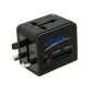Adaptateur de voyage universel avec 2 ports USB pouvant être utilisé dans plus de 150 pays, avec des prises pour le Canada, les États-Unis, le Royaume-Uni, l'Europe, l'Australie et la Nouvelle-Zélande. Fusible de sécurité intégré qui protège contre la surcharge, la surtension et les courts-circuits. Les caractéristiques incluent une garantie d'un an et l'article est testé avant l'expédition. Conforme aux normes CE, FCC, Prop 65, RoHS. 61mm L x 56mm H x 50mm P