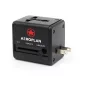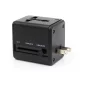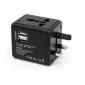 Cet adaptateur de voyage universel dispose de 2 ports USB qui peuvent être utilisés dans plus de 150 pays, avec des prises pour le Canada, les États-Unis, le Royaume-Uni, l'Europe, l'Australie et la Nouvelle-Zélande. Il est doté d'un fusible de sécurité intégré qui protège contre la surcharge, la surtension et les courts-circuits. Les caractéristiques comprennent une garantie d'un an et l'article est testé avant l'expédition. Conforme à la proposition 65. 62mm L x 62mm H x 48mm P