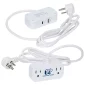 Rehaussez votre jeu de charge! Notre prise ABS ignifuge dispose de deux prises CA, de ports USB et USB-C. Avec un cordon de 5 pieds, elle est polyvalente, sûre et certifiée FCC/ETL. Faites la mise à niveau dès maintenant! Conforme à OU, Prop 65. 3,625" L x 1,125" W x 1,75" H