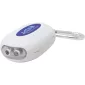 Deux lumières LED intégrées pour aider dans les zones sombres ou peu éclairées. Le mousqueton s'accroche facilement aux clés, sacs ou sacs à main. Il suffit d'appuyer sur le bouton pour allumer/éteindre la lumière. Vous activez l'alarme d'urgence en tirant simplement sur la goupille. L'alarme émet 100 à 110 décibels et peut être entendue jusqu'à 175 à 225 pieds selon les conditions environnantes. La lumière a une portée de faisceau de 19 mètres, est résistante aux chocs jusqu'à 3 mètres et a une luminosité de 3 lumens. Conforme à la proposition 65. 1,5" L x 3" H