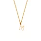 Collier en acier inoxydable avec pendentif lettre "M" plaqué or. Longueur de 18" + 2". Boîte cadeau incluse. Conforme à la Prop 65.