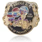 Épingles de revers de grande valeur perçue. Estampées à la presse avec une surface lisse en émail dur. Comprend : 5 couleurs PMS remplies à la main ; surface hautement polie, placage en laiton, nickel ou nickel noir, attache militaire ou en caoutchouc. Conforme à la norme ISO 9001. 2 1/4" L x 2 1/4" H