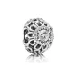 Charme Pandora Floral Brilliance, un cadeau éternel en argent sterling composé de trois pierres centrales taillées en parachute hexagonal et de 48 zircones cubiques. Un merveilleux cadeau de charme pour la remise des diplômes, un anniversaire, la retraite ou toute célébration.