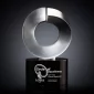La lueur lumineuse et le design sophistiqué de l'Astral créent un contraste riche avec la base en cristal optique noir hautement poli, créant une œuvre d'art de qualité galerie. Disponible avec une finition lunaire ou nacrée. 6,0" L x 10,0" H x 4,0" P