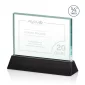Le Ballard présente un magnifique cristal de jade lumineux de 3/4" d'épaisseur, présenté dans un affichage rectangulaire soigné qui s'incline vers le bas dans une base noire triangulaire. 9,0" L x 7,0" H