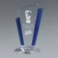 Cristal vertical avec des accents de cristal bleu et une empreinte sablée. Base rectangulaire en cristal biseauté clair. 5,5" L x 9,5" H