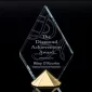 Le cristal Starfire est niché profondément dans notre base de pyramide en métal coulé pour faire écho à la géométrie céleste de la forme de diamant biseauté. 8,0" L x 11,0" H x 2,5" P