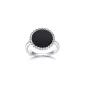 BAGUE "Nautique" en agate noire ronde de 12 mm avec bordure en corde - Argent - Taille 6