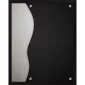 Ces plaques présentent un acrylique noir biseauté poli avec des accents métalliques. Le panneau d'impression en acrylique transparent est suspendu avec des éléments décoratifs en chrome. 8" L x 10" H x 1" d'épaisseur