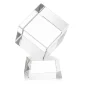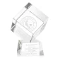 Un cube parfaitement poli fabriqué à partir du cristal optique le plus pur. Présente une subtile arête biseautée tout autour. Laissez briller cette pièce de reconnaissance en tant que prix, presse-papiers ou souvenir pour votre bureau ou étagère. Complet avec votre choix de base en cristal optique effilée Clair, Ébène, Saphir ou Émeraude. 5,625" L x 6,875" H x 4,0" P