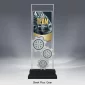 Faites reconnaître vos meilleurs collaborateurs et immortalisez leur nom avec le Sleek Award ! Utilisant une imagerie en couleur, ce prix en cristal poli et granit noir présente une sélection de 5 accents métalliques superposés entre les montants en cristal. La personnalisation pour le destinataire peut faire de ce prix un objet précieux pour les années à venir. Les choix de formes métalliques sont : Engrenage, Étoile, Pic, Bord et Cercle, et sont parfaits pour vos cérémonies et dîners d'entreprise. Saluez une loyauté solide avec une reconnaissance exquise. 4,5" L x 11,25" H