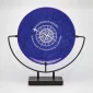 Un verre d'art rubis ou saphir étincelant se marie avec un verre filigrane noir pour créer ces grandes assiettes de récompense de 18" de diamètre, tenues par un support en acier noir et Stonecast™, offrant une présentation spectaculaire pour un hall d'entrée ou une maison. 1 Colorfill inclus. 23,0" L x 25,0" H