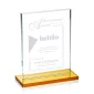 Le prix de l'Empereur est un rectangle de cristal Starfire d'une épaisseur de 1/2 pouce, simple mais élégant, monté verticalement ou horizontalement sur une base en cristal ambré. Un prix idéal offrant une grande surface de décoration pour reconnaître une réalisation significative. Disponible avec d'autres bases, voir les articles associés. 7,0 po L x 9,0 po H x 0,5 po P.