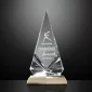 L'Exalt est une extraordinaire lance en cristal optique avec des biseaux profonds pour former cette sculpture exquise. Lorsque la lumière frappe sa surface, les biseaux épais et fins créent une lueur arc-en-ciel. Le prix est monté sur une base en métal moulé argent ou or brillamment plaqué, surmontée d'un miroir. 6,0" L x 11,0" H x 2,5" P