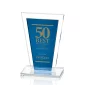 La forme cristalline trapézoïdale bleue solide du Heckel est entourée de cristal clair qui se reflète dans la base en cristal clair pour créer une réflexion infinie d'élégance. 7,0" H