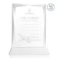 Un incontournable de l'industrie de la reconnaissance, le Messina est un prix saisissant en cristal Starfire épais de 3/4" monté sur une base Newhaven claire ou colorée. Doté de biseaux interchangeables brillants qui créent un magnifique cadre de lumière réfractée pour votre réalisation spéciale. Deuxième gravure en position et remplissage de couleur en option. 9,0" L x 11,5" H x 2,0" P